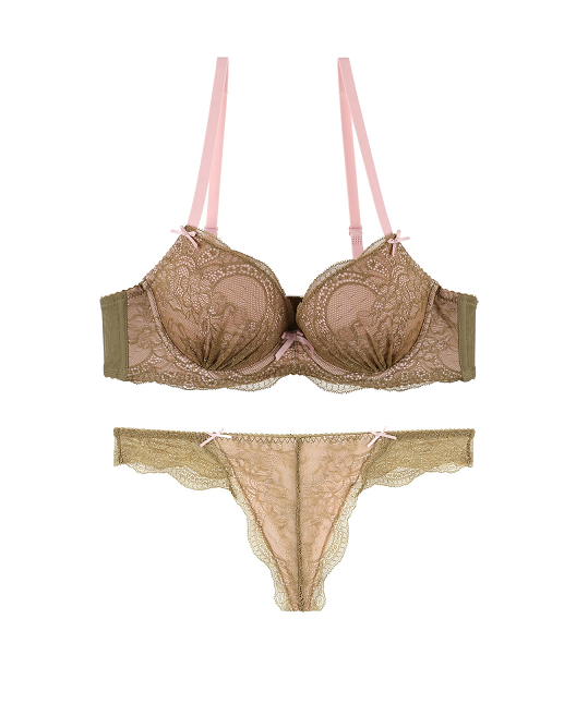 올리브그린과 베이비핑크의 UNIQUE한 컬러매치의 REAL LINGERIE제품.