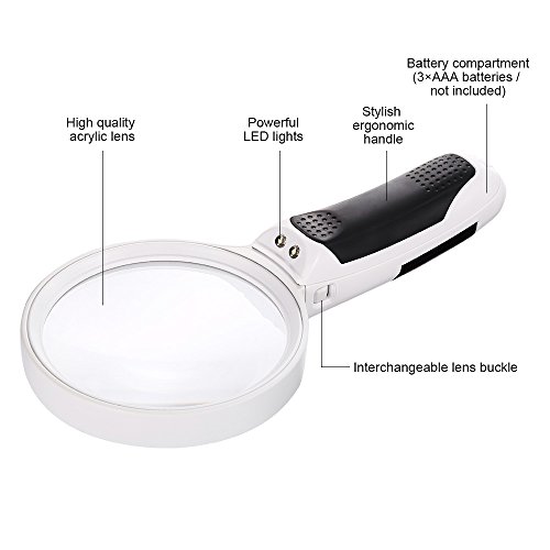 【LED LIGHT】Built-in energy-efficient LED lights provide a bright illumination under any condition. Ideal for protecting your eyes when reading in dark environment. Powered by 3×AAA batteries (NOT INCLUDE). Take down the lens, it can be used as a floodlight