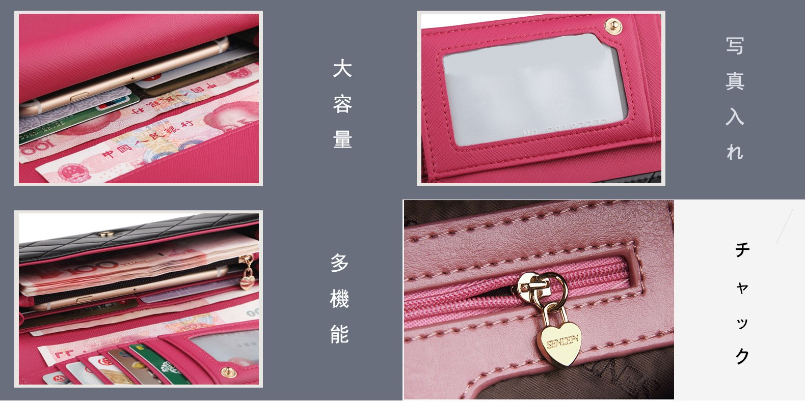 Wallet × 3, with coin purse, photo × 1, card pocket × 14, fastener pocket × 1.