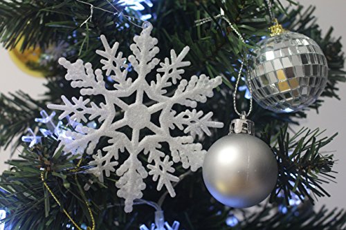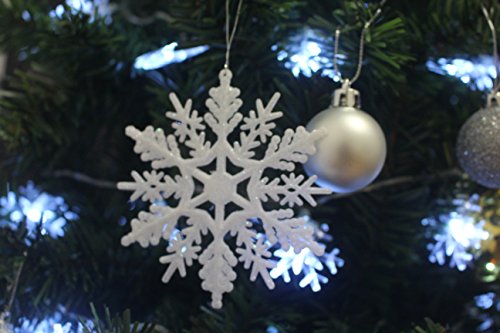 24 Sparkling White Iridescent Glitter Snowflake Ornaments on String Hanger for Decorating, Crafting and Embellishing