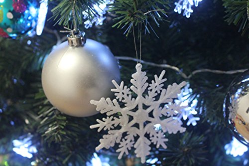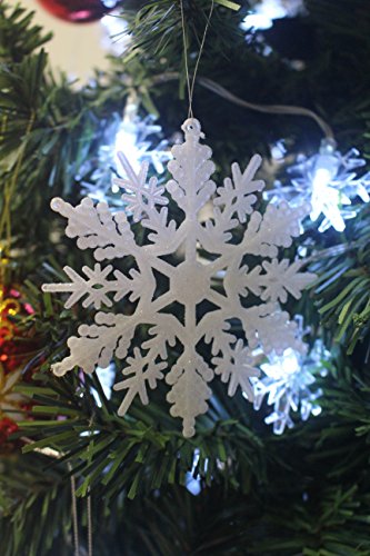 Plastic Snowflake Ornaments, tiny 24pcs Sparkling White Iridescent Glitter Snowflake Ornaments on String Hanger for Decorating, Crafting,wedding and Embellishing(3inch, white)