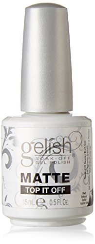 -. Binding : Health and Beauty -. Brand : Gelish -. EAN : 0885420832093 -. Feature : Soaks completely off in only 15 minutes / Gelish stays on nails for three weeks with no chipping or peeling / The gel applies like polish but is cured under a uv light like gel nails -. IsAdultProduct : 0 -. Label : Mainspring America, Inc. DBA Direct Cosmetics -. Manufacturer : Mainspring America, Inc. DBA Direct Cosmetics -. Model : HMYG0005 -. MPN : HMYG0005 -. NumberOfItems : 1 -. PackageQuantity : 1 -. PartNumber : HMYG0005 -. ProductGroup : Beauty -. ProductTypeName : BEAUTY -. PublicationDate : 2016-03-19 -. Publisher : Mainspring America, Inc. DBA Direct Cosmetics -. ReleaseDate : 2016-03-16 -. Studio : Mainspring America, Inc. DBA Direct Cosmetics -. Title : Gelish Soak Matte Top It Off Sealer Gel Nail Polish, 0.5 Ounce -. UPC : 812803012223