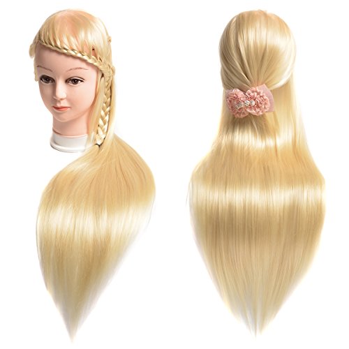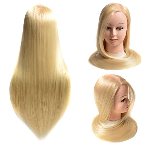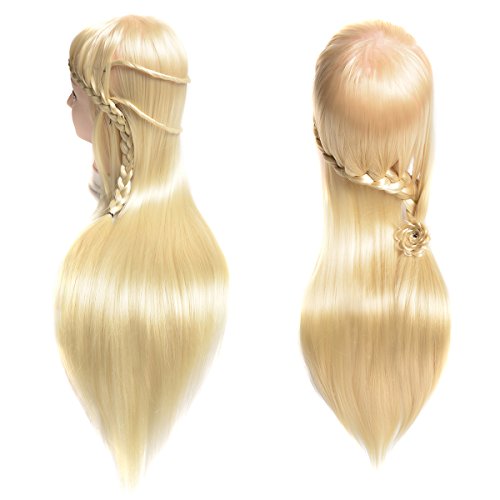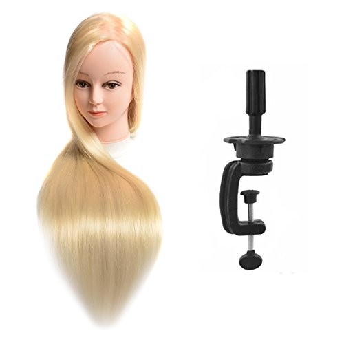 20" Synthetic Cosmetology Mannequin Training Head with Hair and Free Clamp Holder Bleach Blonde