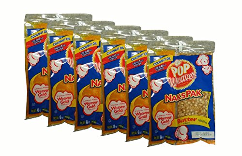 Pop Weaver Naks Pak 8 oz Butter Flavored Coconut Oil and Popcorn Packs for 6 oz Popper Popping Machine - 6 PACK