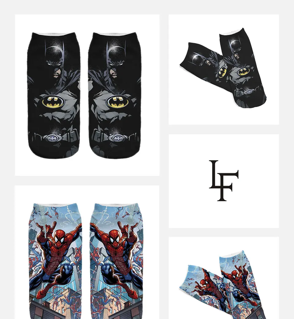 Character Printed:Spider Man Socks,Batman Socks,Captain socks,Iron Man socks