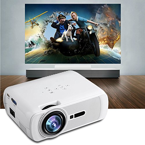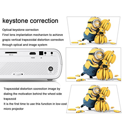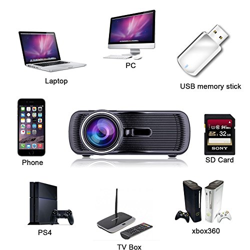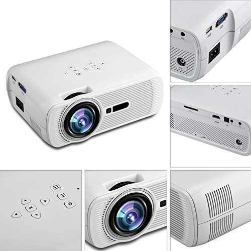 - Feature : Small size, big picture, with multiple input and out interface (AV\VGA\USB\SD\HDMI\TV) / 800x480 native resolution, contrast 1000:1, 16:9 4:3 wide screen, 37-130 inches projection size, capable for most applications like watching movies or making presentation etc / Built-in high quality stereo sound, no external audio required to watch movies; ideal for home theater movies and video game use. / Completely sealed designed, high efficiency ventilation design, largely upgraded the stability and life time, LED lamp, works for over 20000 hours, with vivid color and abundant details; Optical keystone correction function, which can adjust keystone distortion of images / USB and SD card direct play, can play JPEG BMP GIF PNG TIF image,WMA MP3 AV audio, RMVB AVI MP4 video etc;Need to use in dark environment, perfect for home video playing(NOT FOR TEACHING,BIG MEETING,HD PROJECTING)
