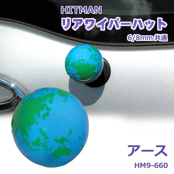 地球のデザインのリアワイパーマスコットです。約4cmφの球形で陸地の部分が少し盛り上がっています。 製造国:台湾 素材・材質:樹脂 商品サイズ:約φ4cm 仕様:6/8mm共通※6mmの車には付属のアダプターを使用 付属品:アダプター ※サプライヤー直送品 ご注文後2~3営業日後の出荷となります【商品名】HITMAN リアワイパーハット アース 6/8mm共通 HM9-660