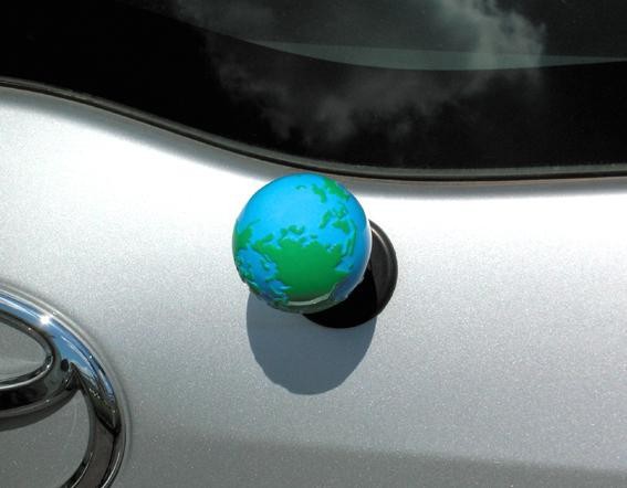 地球のデザインのリアワイパーマスコットです。約4cmφの球形で陸地の部分が少し盛り上がっています。
