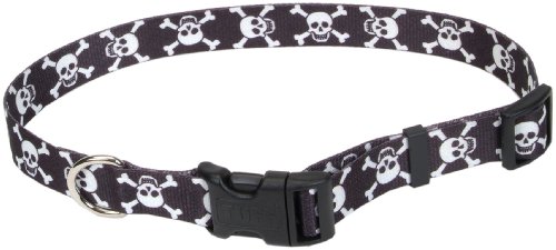 Studio : Coastal Pet Products Publisher : Coastal Pet Products Binding : Misc. Product Description Pet Attire® Adjustable Skulls Dog Collar Flaunt your dog's flare with this eye-catching Pet Attire® Adjustable Skulls Dog Collar. Its soft, silky-smooth woven nylon material boasts comfort and long-lasting durability, while the vibrant, double-sided skulls print shows off your dog's spunk. This adjustable collar has all the amenities, including a high-impact plastic buckle, steel D-ring, and nylon quick release fastener. Available in three adjustable sizes. Intended for use with the Pet Attire® Adjustable Skulls Dog Lead. Features: · Vibrant, colorfast pattern printed on both sides · High-impact plastic buckle · Steel D-ring for leash attachment · Nylon quick release fastener · Comfortable and stylish · Available in three adjustable length sizes Item Specifications: Size: Small: 10"-14"L (adjustable) x 5/8"W Medium: 14"-20"L (adjustable) x ¾"W Large: 18"-26"L (adjustable) x 1"W Color: Black/White Style: Skullsw 0