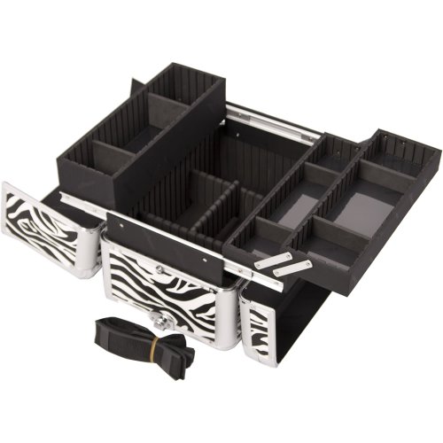 - 2-in-1, 360 degree professional makeup case, in this beautiful white zebra print with silver aluminum trimming