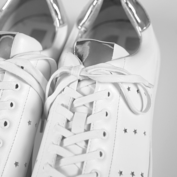 清潔感のあるクリーンな印象に仕上げたオリジナルのレースアップシューズ。