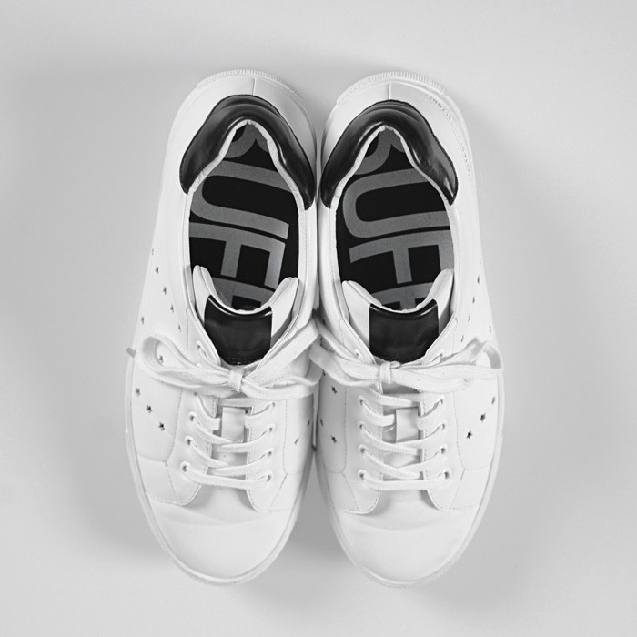 ■商品説明文 BUFFALO BOBS(バッファローボブズ)STAR CLASSIC(スタークラシック)レースアップスニーカーです。 清潔感のあるクリーンな印象に仕上げたオリジナルのレースアップシューズ。 星形のパンチング部分が配色になっているのが特徴です。 ホワイトソールなので、スキニーパンツ、ワイドパンツ、クロップド丈など、ボトムスを選ばないのもポイント。 ワントーンのスニーカーはシンプルでスタイリングを邪魔せず、かつ存在感がありコーディネートをシックにまとめられるのでおすすめです。 ■サイズ サイズ41 →26cm~26.5cm サイズ43 →27cm~27.5cm ■素材 合成皮革