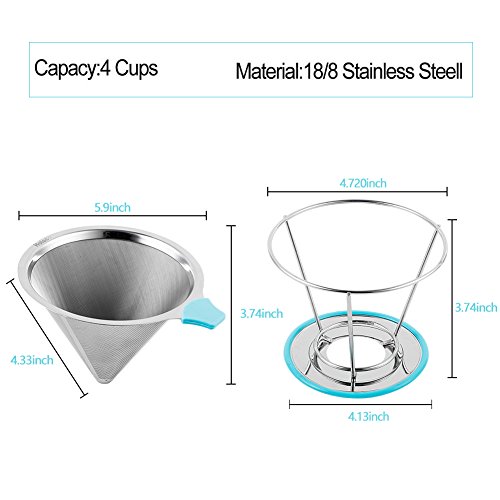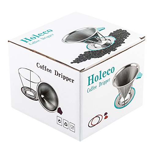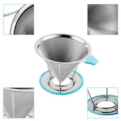-. Brand : Holeco -. Color : Blue -. Feature : ☕ FITS MOST MUGS OR BIG CUPS ➨ Fits any mug up to 4 inches wide. The reusable filter cone separates from the stand and can also be used with a glass carafe or flask. This clever, sturdy colorful rubber grip design looks great on your counter top too! / ☕ INNOVATIVE DOUBLE LAYERED MESH DESIGN ➨ The inner ultra-fine and the outter laser-cut mesh are made from high-end 18/8 stainless steel, which prevent grounds or sediment from getting into your cup effectively. / ☕ ECONOMICAL AND ECO-FRIENDLY ➨ No more disposable paper filters or plastic filters. This permanent coffee filter is highly durable and can last for a very long time, which eliminates paper waste and save your money. / ☕ VERSATILE AND EASY CLEANUP ➨ This coffee maker perfectly fits on cups, mugs and carafes with the separate stand base. It's also great for cold brew coffee! Cleanup after use is incredibly fast and easy. Just simply rinse it well under running water or put in the dishwasher. / ☕ 100% MONEY-BACK GUARANTEE ➨Holeco are backed by 100% guarantee that you are fully satisfied with your product or receive your money back. -. Label : Holeco -. Manufacturer : Holeco -. MPN : hoco001 -. PartNumber : hoco001 -. ProductGroup : Kitchen -. ProductTypeName : KITCHEN -. Publisher : Holeco -. Studio : Holeco -. Title : Coffee Filter Cone Stainless Steel Coffee Dripper Perfect for Pour Over Coffee Maker, Eco and Environmentally Safe 100% Reusable Filters - Serves 1-2 Cups