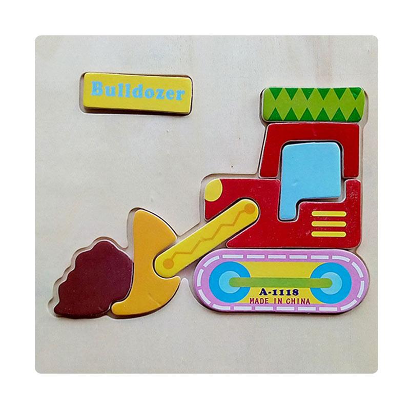Momo Transport Kendaraan Kayu Mainan Puzzle - Bulldozer