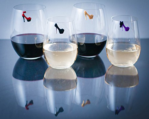 Each magnetic glass marker attaches THROUGH the glass with 2 powerful magnets. Therefore, our charms work on every type of glass, including stemless wine glasses, martini glasses, and beer mugs. They also work on plastics and acrylic glasses, including red solo cups.