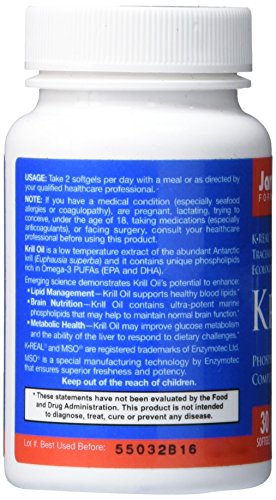 Krill Oil is a low temperature extract of the abundant Antarctic krill (Euphausia superba) and it contains unique phospholipids rich in Omega-3 PUFAs (EPA and DHA).Emerging science demonstrates Krill Oil's potential to enhance:Lipid Management-Krill Oil supports healthy blood lipids.*Brain Nutrition-Krill Oil contains ultra-potent marine phospholipids that help to maintain normal brain function.*Metabolic Health-Krill Oil may improve the ability of the liver and glucose metabolism to respond to dietary challenges.* Store in a cool; dry place. Keep out of the reach of children.Feature