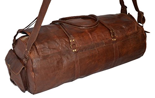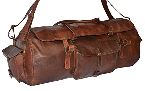 -. Brand : Handmade -. Color : Brown -. Department : womens -. Feature : 1 Front Pocket / 2 Side Pockets / Handles On Top / 2 Cross Body Belts For More Strength / Inside Zipper Under Flap -. ProductGroup : Apparel -. ProductTypeName : LAGE -. Size : Medium -. Title : Vintage Genuine Leather Lage Weekend Travel Shoulder Men Gym Duffle Bag 22"