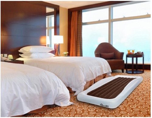 - Feature : Signature sheet-tuck feature - fits all standard crib-sized sheets / Our trademarked security rails helps prevent your child from falling off / Inflates quickly in 30 seconds / Includes a convenient carrying bag, repair kit and the compact yet powerful Jetaire Electric Pump / Phthalate-Safe, BpA-Safe and Lead-Safe