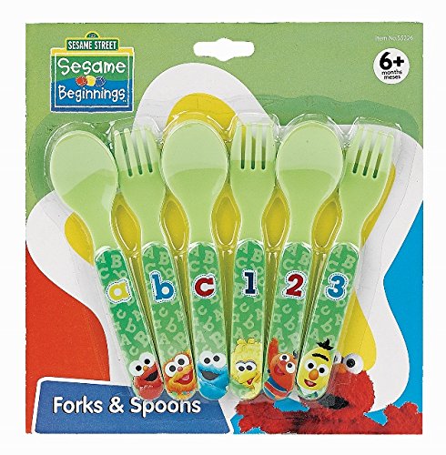 Sesame Beginnings 6 Piece. Plastic Fork/Spoons Set. Available from Regent Baby Products. Treating your baby royally since 1946.