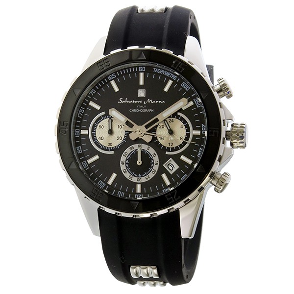サルバトーレ マーラ SALVATORE MARRA クロノグラフ クオーツ メンズ ウォッチ 時計 ブラック/シルバー Salvatore Marraは1967年5月、イタリアのSan Giovanni In Foire生まれ。現在はルネサンス文化の中心地であった国際都市フィレンツェに住まいとアトリエを持ち、クリエイティブな仕事に専念している。イタリアの文化、デザインと、インターナショナルなセンスとの融合が生んだ「挑発とエレガンス」 どんな場所、どんな時間にもふさわしいコレクションとなるよう優れたクオリティ、適切なプライス、調和のとれたカラーとイタリアン・テイストを探求し続ける。プレゼントやギフトにもおすすめ。