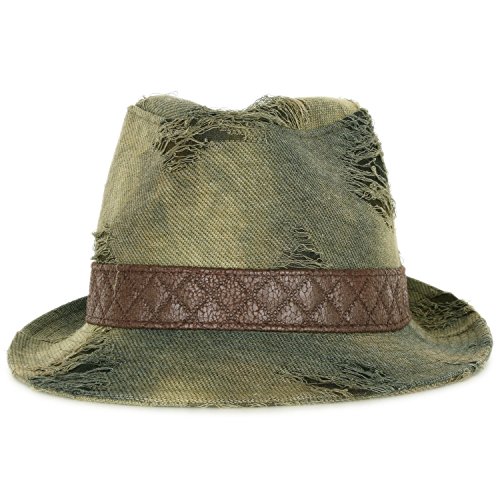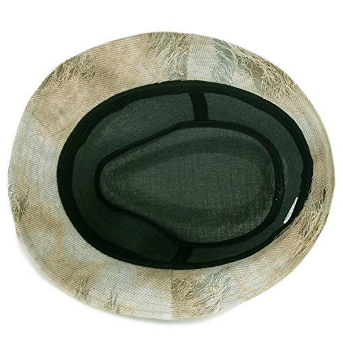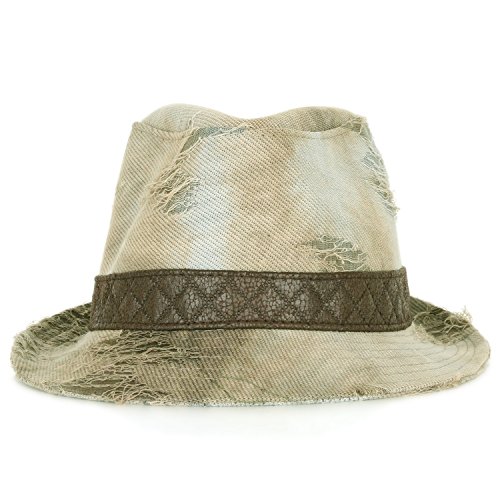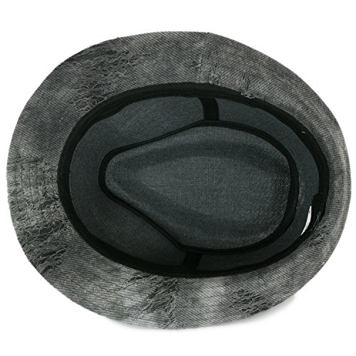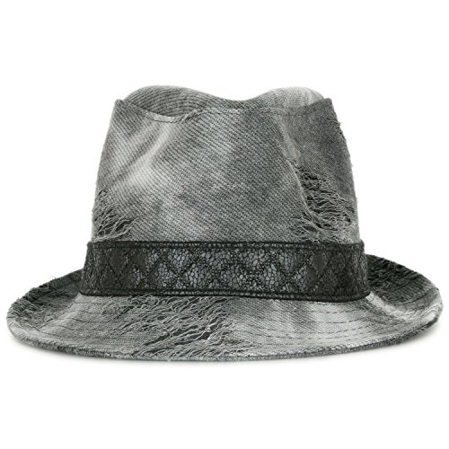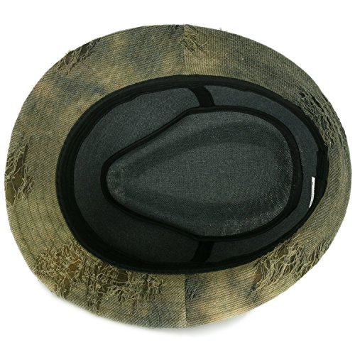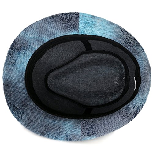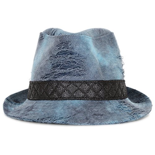 -. Title : ililily Women's Distressed Tie-Dye Denim Solid Fedora With Black Trim Detail
