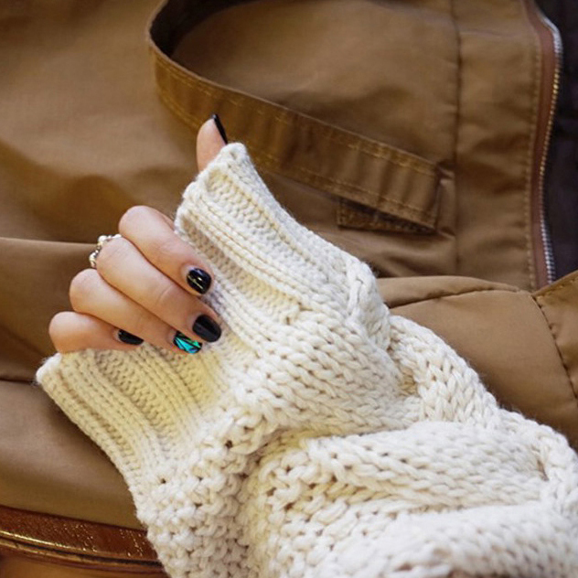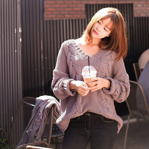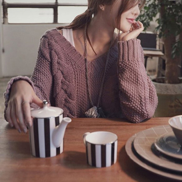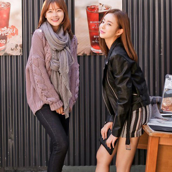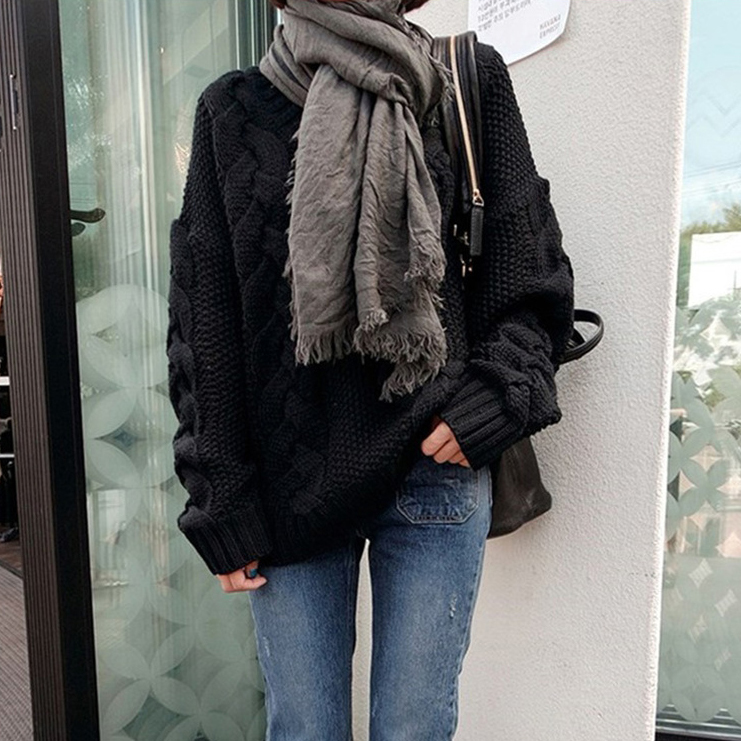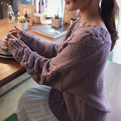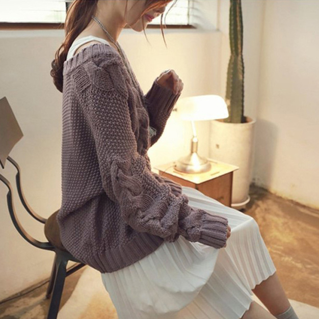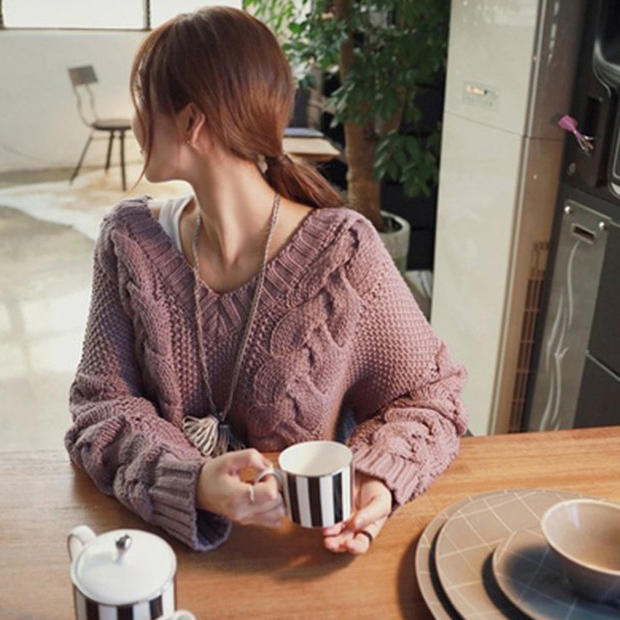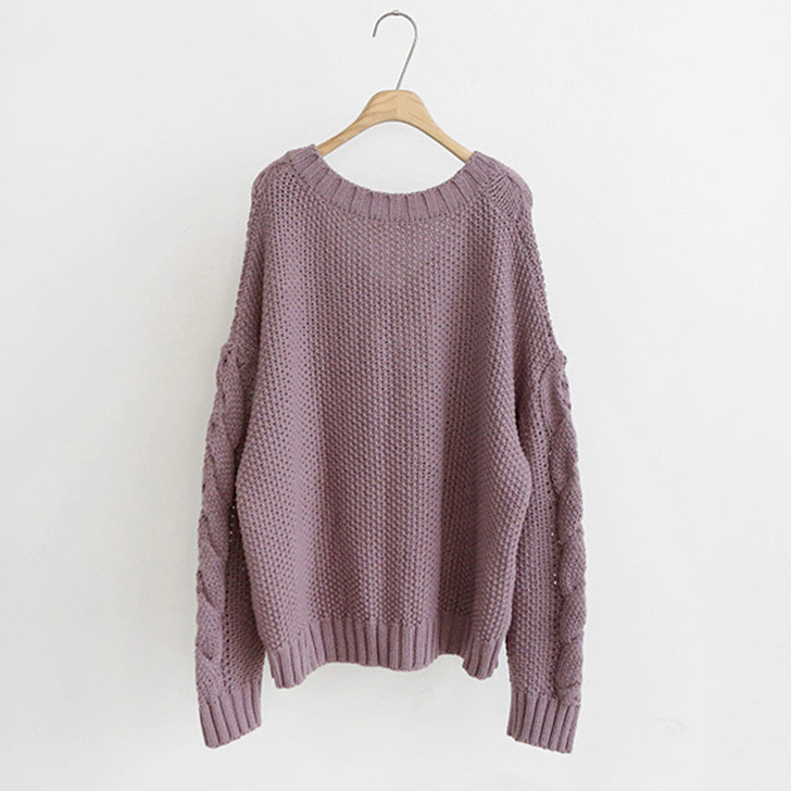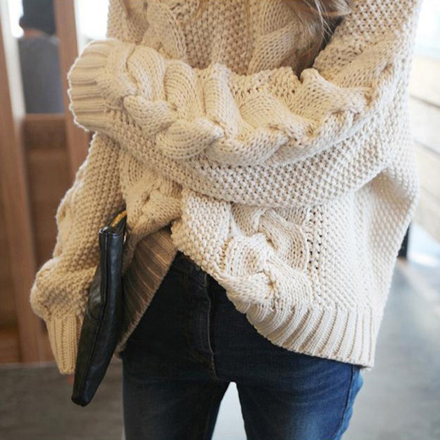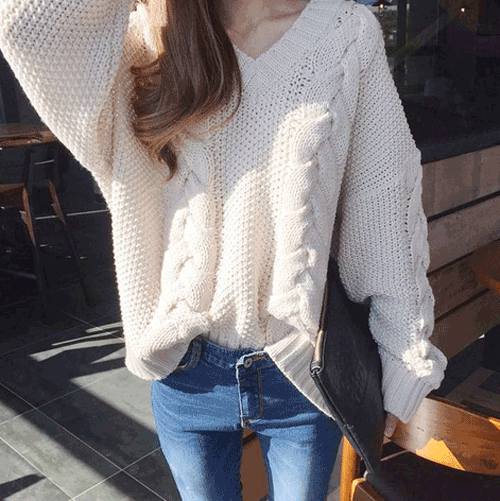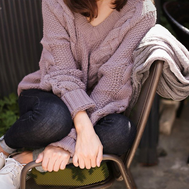 ボリューミーなケーブル編みを色っぽく着こなせるゆるニット。