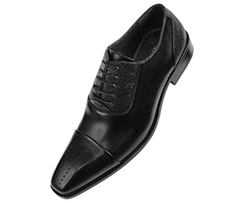 Amali Mens Black Smooth Cap Toe Oxford Dress Shoe with Exotic Lizard Printed Detail: Style Tex-000