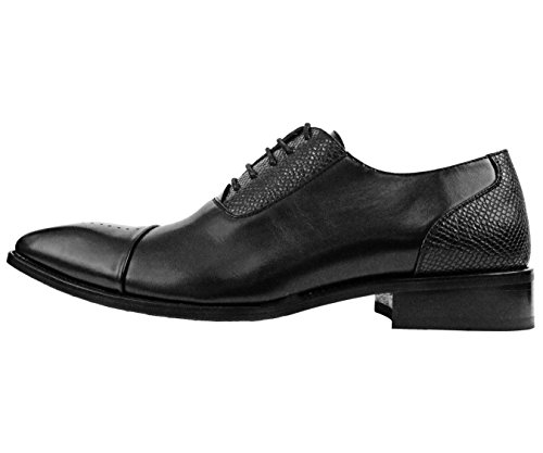Product DescriptionAmali Mens Black Smooth Cap Toe Oxford Dress Shoe with Exotic Lizard Printed Detail on Heel and Eyerow: Style Tex-0000