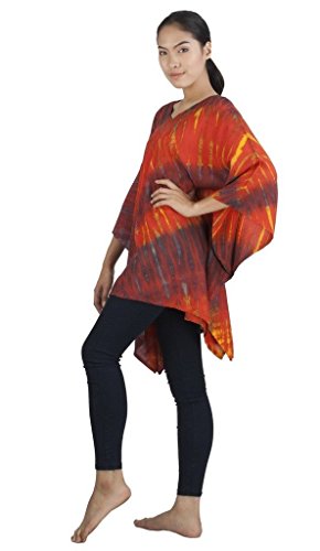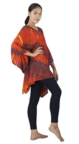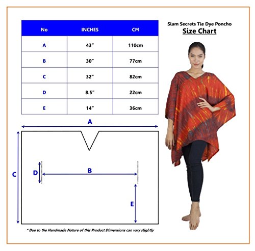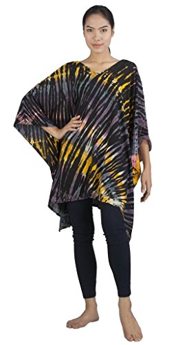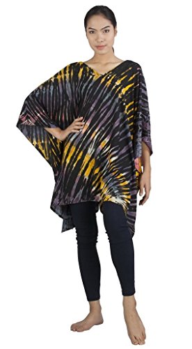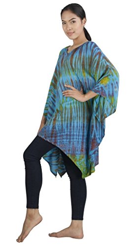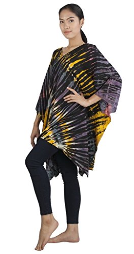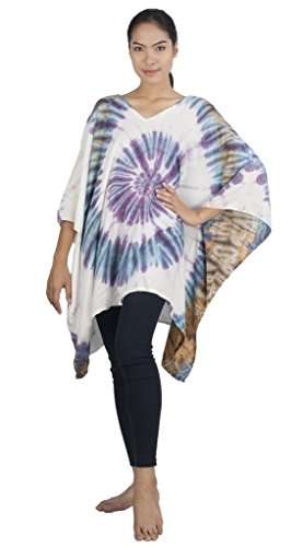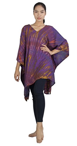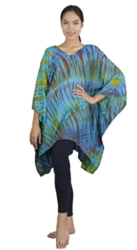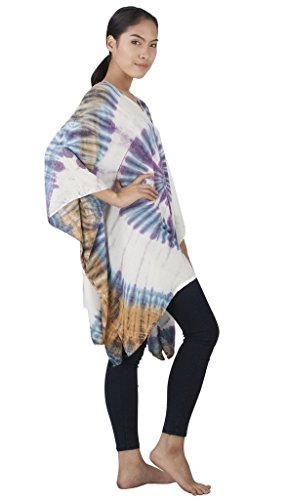 Binding : Apparel Product Description Real Tie Dye V-Neck Caftan beautifully hand crafted on 100% soft Silky Rayon fabric exclusively for Siam Secrets. Each one totally unique although similar in design and color to the picture you choose. This design is perfect as a Beach Cover-up, Lightweight Summer Tunic top or Shawl, Topper, Casual enough for beachwear and elegant enough to wear on an evening out. This item Benefits from a broad fit range and suits Women of all ages and most sizes. GARMENT CARE: For best results soak in lukewarm salt water or Fabric softener over night to set and prolong the richness of the colors. Hand or Machine Wash Cool with similar colors. Do not Tumble Dry. Cool Iron. No Bleach. SIZES WHEN LAID FLAT: 43" Wide X 32" Long, (Suitable for Bust sizes up to 56") 0