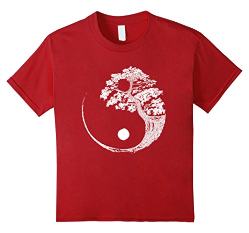 Kids Yin Yang Bonsai Tree Japanese Buddhist Zen T-Shirt 8 Cranberry