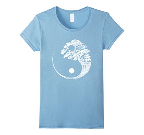 Womens Yin Yang Bonsai Tree Japanese Buddhist Zen T-Shirt Small Baby Blue