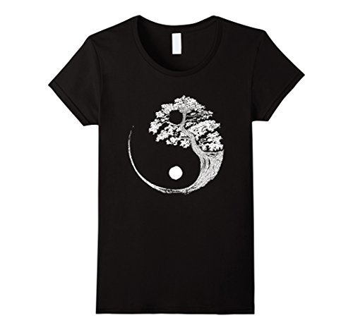 Womens Yin Yang Bonsai Tree Japanese Buddhist Zen T-Shirt Small Black