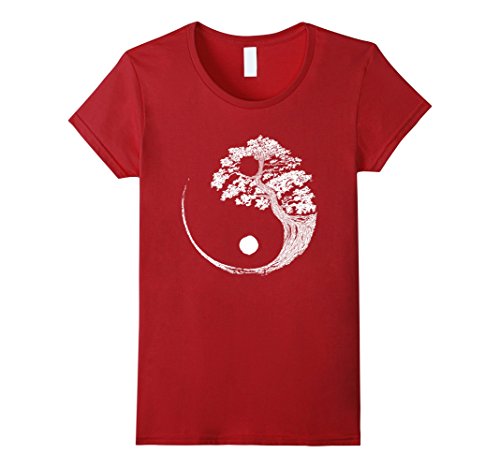 Womens Yin Yang Bonsai Tree Japanese Buddhist Zen T-Shirt Small Cranberry