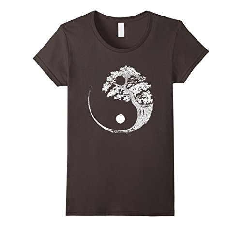 Womens Yin Yang Bonsai Tree Japanese Buddhist Zen T-Shirt Small Asphalt
