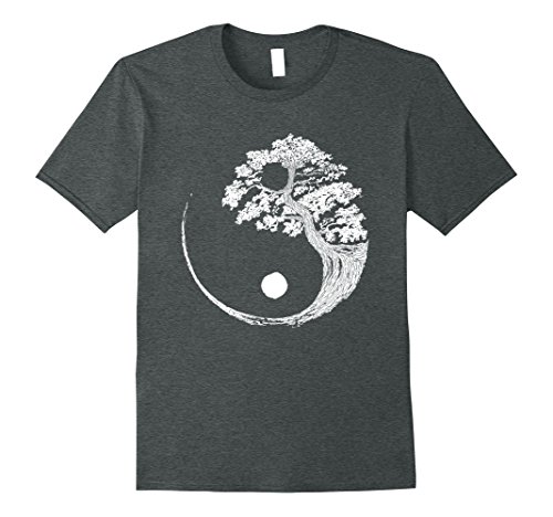 Mens Yin Yang Bonsai Tree Japanese Buddhist Zen T-Shirt Medium Dark Heather