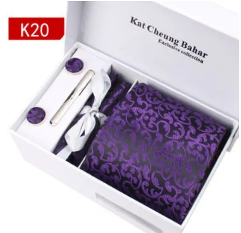 상품 내용 3.15 인치 (8cm) 와이드 남성 액세서리 스트라이프 페이즐리 패턴 비즈니스 넥타이 세트 손수건 손수건 커프스 넥타이 포장 상세