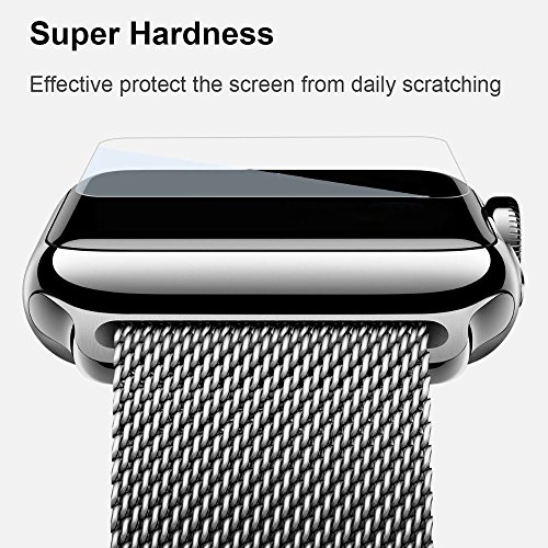 -. Feature : Specifically designed for Apple Watch / High Hardness: Glass material after high tempered steel processing,surface hardness up to 8-9 h,impact resistance is strong,not easy scratches / Ultra-high light transmittance: (transmittance of 98% or more) optical transmittance grade, ultra-low reflection, high Transparency. / High sensitivity:The glass is coated on the back with a strong silicon adhesive that makes installation easy and attaches the film firmly so as to not affect the touch screen's sensitivity. / Automatic bonding,High quality antistatic adsorption film ,make the product bonding and separation simple,easy to operate. it will automatically bond the screen.
