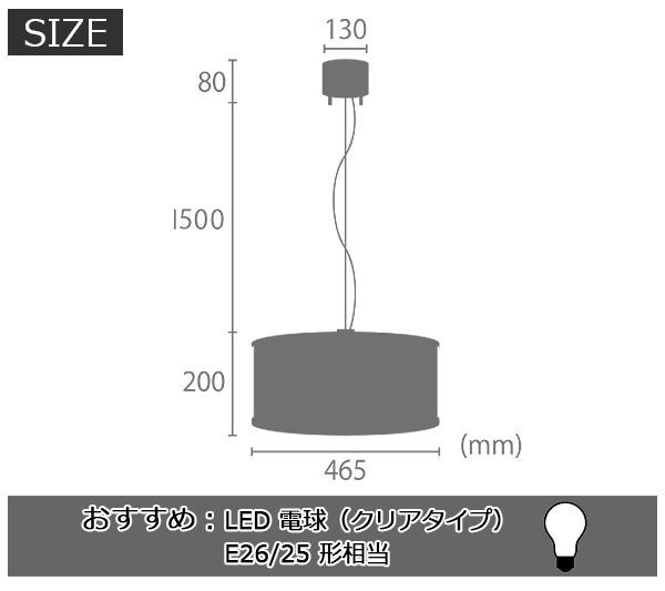 | サイズ | φ465×H200mm、フランジ:φ130×H80mm、ワイヤー:最長1500mm 個装サイズ:48×49×26cm |