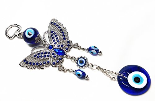 -. Binding : Kitchen -. Brand : Betterdecor -. Feature : The sale is for one Evil eye hanging and a pounch with "Betterdecor" Logo P.R.Inted on it. / total length is about 6.75" , the butterfly is about 2.5"x1.75" / Material : metal and glass / you can put them on the wall of your office and home or any where you like. / it is great wall ornament and good gift idea -. ProductGroup : Home -. ProductTypeName : HOME -. Title : Blue Evil Eye with Butterfly Charm Hanging for Protection (With a Betterdecor Pounch)