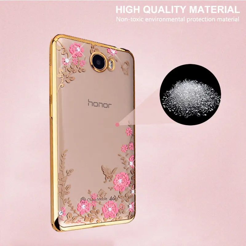 メッキバンパーケースhuawei社y5 ii名誉5a LYO-L21カバーダイヤモンド掘削花ソフトtpu用huawei Y5ii 2 coque fundas capa
