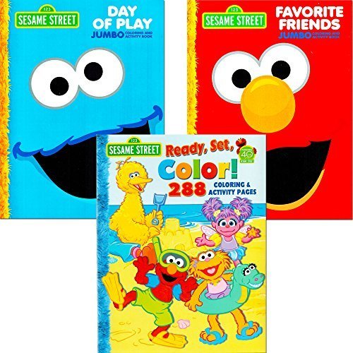 Delight your Sesame Street fan with this Sesame Street coloring book super set! Sesame Street coloring and activity book set with your favorite characters from Sesame Street including Elmo, Cookie Monster, Big Bird and more! These Sesame Street coloring books will provide many hours of fun with games, puzzles, mazes and coloring activities. Set of 3 Sesame Street coloring books -- one Sesame Street Ready, Set, Color book (288 pages), one Elmo coloring book (96 pages), and one Cookie Monster coloring book (96 pages)--a total of 480 pages! Sesame Street coloring books measure approximately 8 x 11 inches. Great gift for your favorite Sesame Street and Elmo enthusiast! This coloring and activity book set will provide many hours of learning and fun!Feature