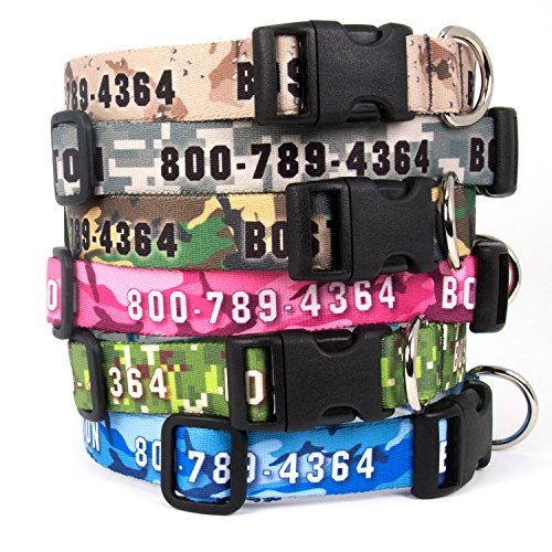 Studio : Buttonsmith Publisher : Buttonsmith Binding : Misc. Product Description Our US-made personalized dog collars are built to ensure your dog's critical information remains with them in the unlikely event they are lost. PERSONALIZED WITH YOUR DOG'S INFORMATION: Add any text you want, including your dog's name, your phone number, an address, or be creative. Our premium personalization permanently bonds the color and information onto the collar, so it won't wear off, become ragged like embroidery, or get lost as tags sometimes do. Personalization information will be repeated along the length of the collar. STRONGER DURABLE WEBBING: We use a top quality polyester webbing made in the USA just for us rather than the nylon used by most of our competitors because polyester repels water, is rot and mildew resistant, doesn't stretch like nylon when wet, and is 5x more abrasion-resistant than nylon. HIGHEST QUALITY BUCKLE: We use Duraflex acetal buckles rather than more common nylon or metal buckles. Acetal buckles have higherr tensile strength than nylon, resist moisture better, and perform better under freezing or arid conditions. We chose acetal over metal because metal corrodes in salt water, creating problems when dogs go swimming (as they often do in our part of the world!). MADE IN THE USA: We design produce the collars in our shop in downtown Carnation, Washington, using 100% US-made materials. Every piece of our collars from the webbing and thread to the buckles and D-rings are made by American workers. DO NOT USE FOR TIE OUT: No collar configured like this should be used to tie a pet out to a fixed object. Buttonsmith's American-made products are created with care in the small town of Carnation, Washington. We use the highest quality materials available so that you can rely on our products for years to come. 0