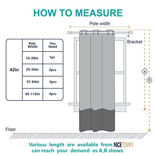 Ready made: Package includes 1 BLACKOUT PANEL of 42" wide x 63" length with 6 grommets top each. Quality fabric without liner feels soft and heavy.