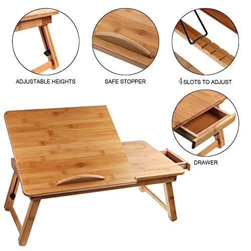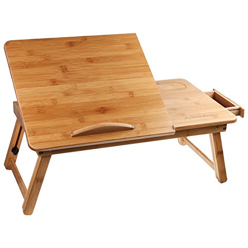 -. Title : Bamboo Lap Desk, Annstory Foldable Notebook Laptop Standing Table, Adjustable Breakfast Serving Bed Tray Tilting Top Drawer