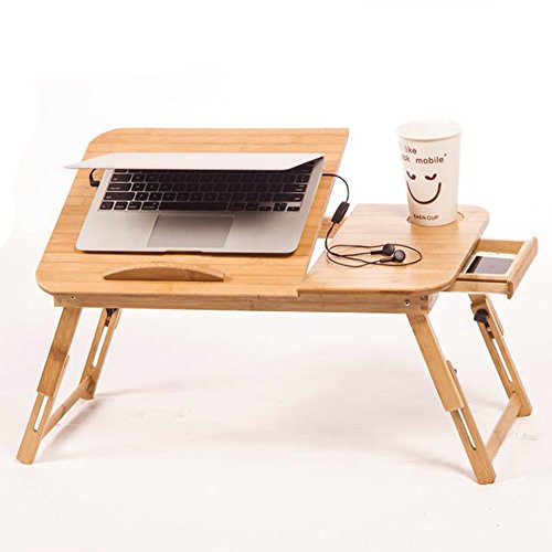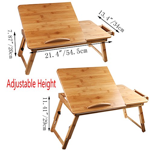 -. Feature : 1.HIGH QUALITY NATURAL BAMBOO -- Provides a smooth surface, environmental friendly, strong bearing, simple and beautiful desk. / 2.MULTI FUNCTIONS -- It not only works as a laptop desk, but also as TV Dinner Tray, Serving desk for patients/kids, Standing Desk for office workers, Book Tray for readers, Writing Desk for kids, Tablet Holder and Standing Desk/Stand Up Desk . / 3.ADJUSTABLE HEIGHTS & WIDTH -- Adjustable tilting angle and legs for better viewing experience. 4 slots for adjustment, for you to find your best viewing angle. / 4.CONVENIENT DESGIN - The built-in small storage drawer can store your pen, note pad, USB cable, flash disk, paper clips and more. / 5.PRODUCT SIZE -- 21.4" / 54.5cm (L) x 13.4" / 34cm (W)x 11.4" / 29cm (H). Perfect for 14-15" laptop.