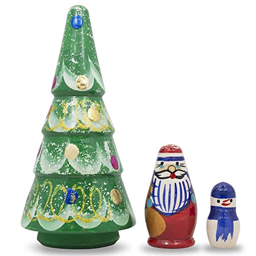 -. Title : 5" Set of Christmas Tree, Santa and Snowman Wooden Russian Nesting Doll Figurines