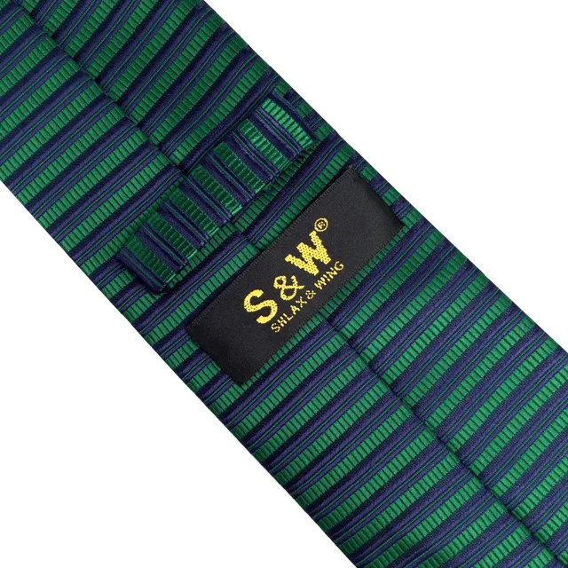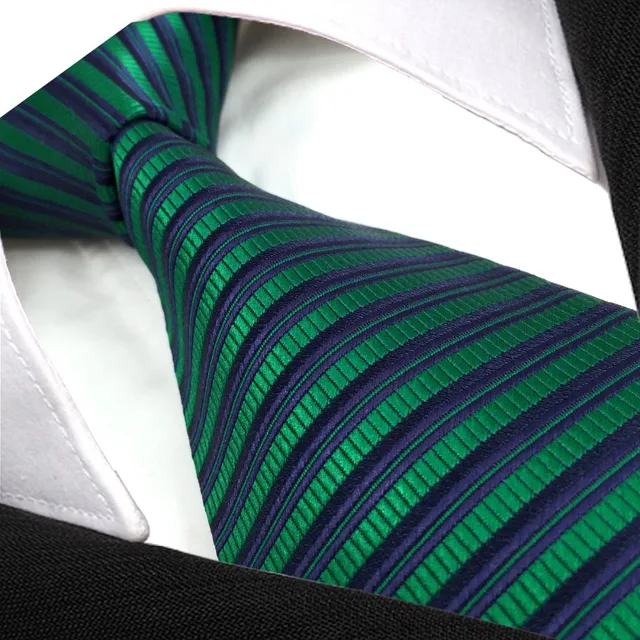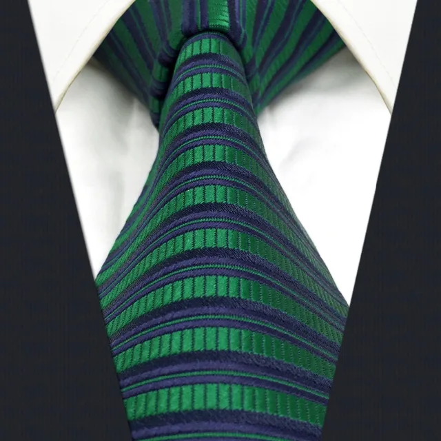 | [해외]C19 블루 녹색 실크 스트라이프 남성 넥타이 넥타이 웨딩 참신 손수건 새로운 브랜드 액세서리 여분의 긴 사이즈 넥타이 남성 |