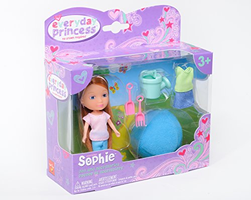 Sophie is 4.5” tall, posable and has long thick beautiful hair perfect for brushing and styling; her bean bag chair is 2”x2”. Sophie is one of the collectibles in the Everyday Princess Line, along with Emma, Haley, Bianca and Julia.