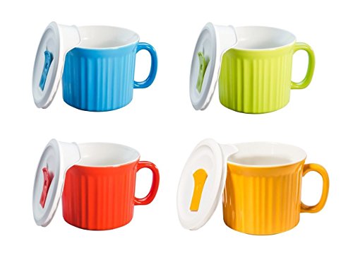 -. Title : CorningWare Pop in mug, 4 mugs with vented plastic covers (Bake, Microwave) 20 oz/591ml