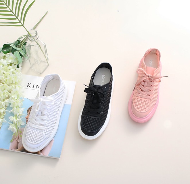 商品名:スニーカー レディース レースアップ メッシュ 2018 春 ファッション 靴 婦人靴